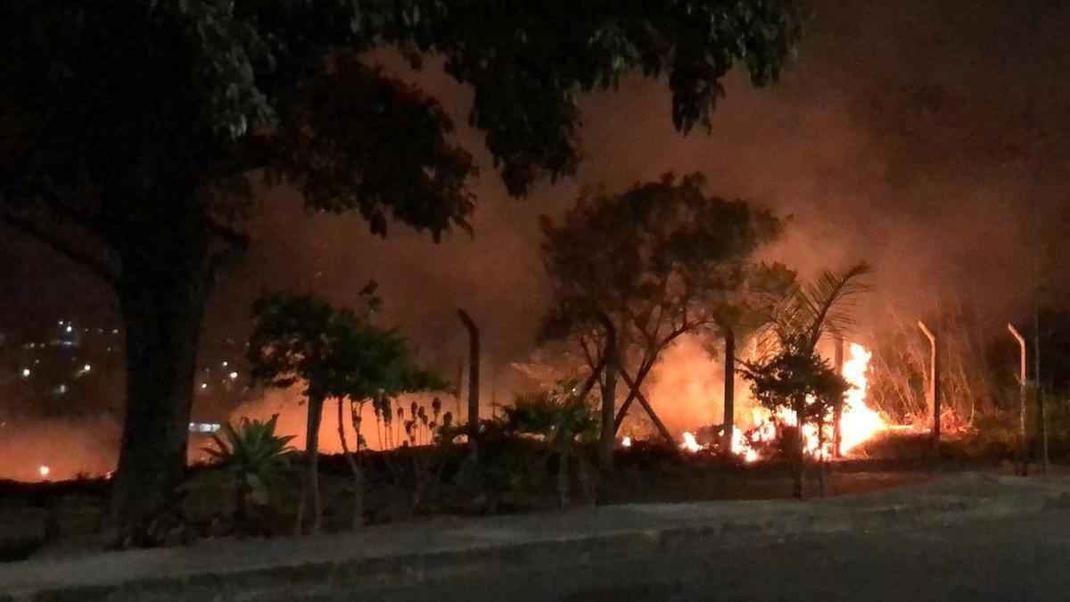 Imóvel está localizado na Região do Barreiro e uma viatura do Corpo de Bombeiros está no local