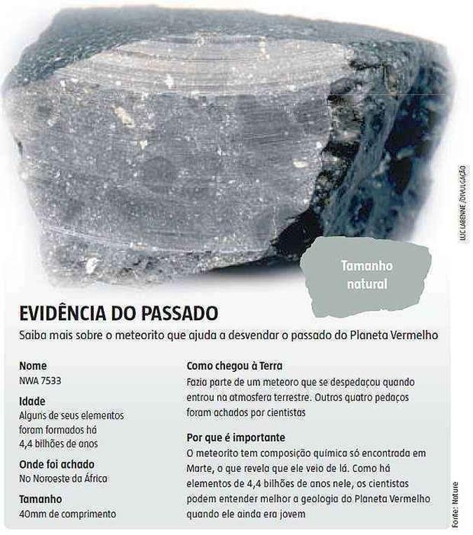 Maria Elizabeth Zucolotto, especialista em meteoritos da Universidade Federal do Rio de Janeiro (UFRJ), explica que nunca foi encontrada na Terra uma rocha tão antiga quanto a NWA 7533, nome dado à amostra. “Essa descoberta nos fala mais sobre o começo do Sistema Solar e decifra o comecinho de tudo. A superfície de Marte é muito antiga e começou a se diferenciar (da de outros planetas) nos seus primeiros 100 milhões de anos. Isso nos permite saber o quão diferente esse planeta já foi e como a água sumiu de lá”, afirma a pesquisadora, que não participou do estudo.