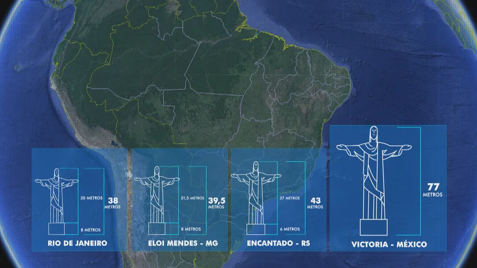 A cidade de Encantado, no interior do Rio Grande do Sul, passou a ocupar um lugar de destaque no mapa do turismo religioso com a inauguração do Cristo Protetor, agora reconhecido como a maior estátua de Cristo no Brasil. Com 43 metros de altura e uma envergadura de 36 metros, o monumento ultrapassa os 38 metros do tradicional Cristo Redentor do Rio de Janeiro, ganhando os holofotes nacionais e internacionais.