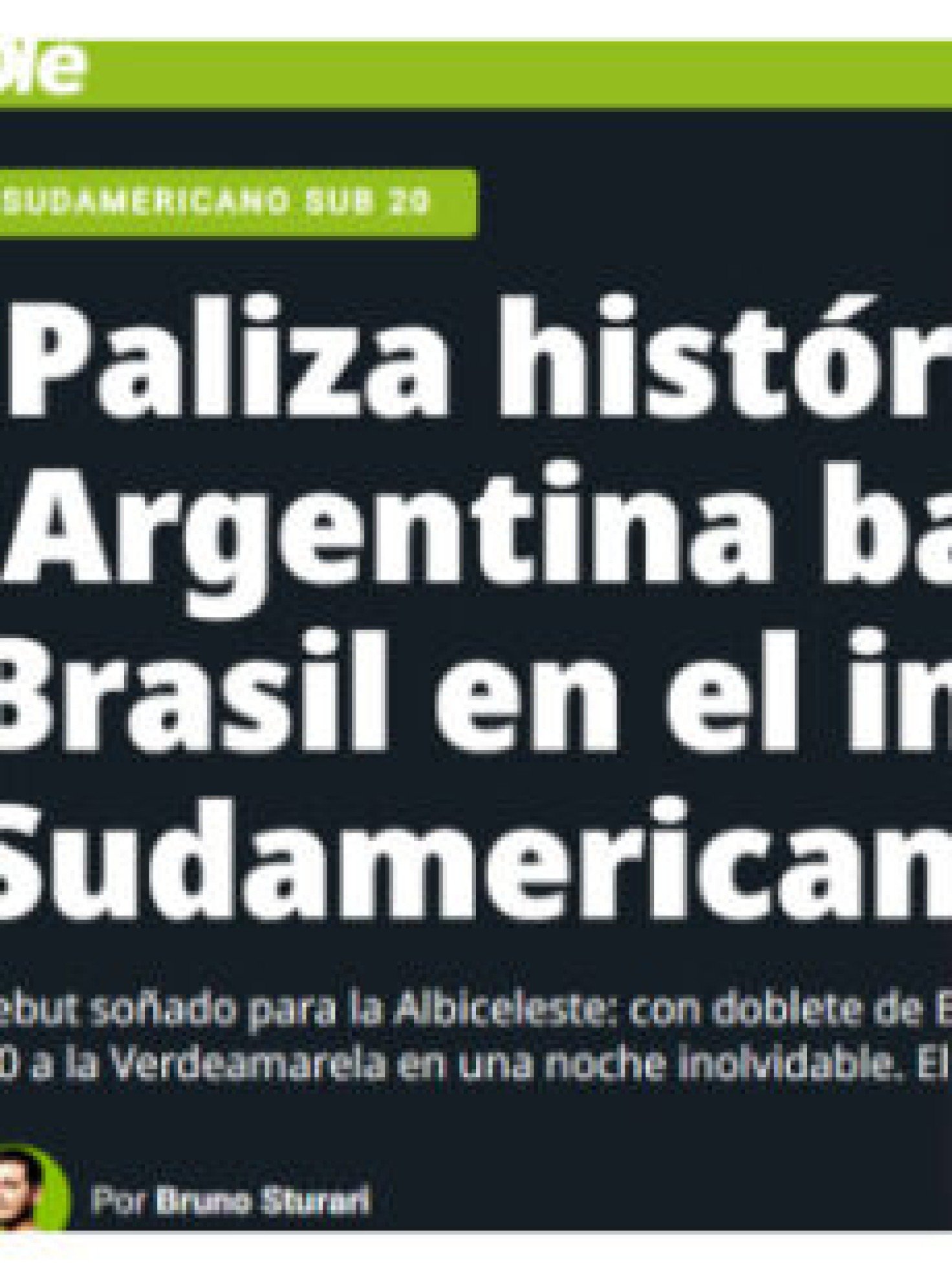 O TyC Sports, por sua vez, trouxe em sua manchete: “A Seleção Argentina esmagou o Brasil no Sul-Americano Sub-20”.