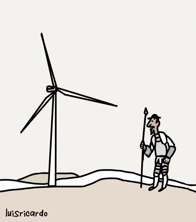 "Lutar contra moinhos de vento", inclusive, se tornou uma expressão popular com o sentido de atacar inimigos imaginários. Foto: Luis Ricardo Ramos/Wikimedia Commons -