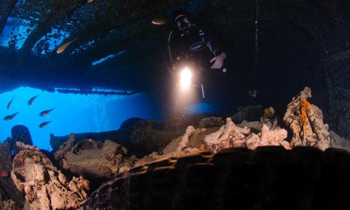 Com aproximadamente 82 m de profundidade, o navio permanece em excelentes condições, mas somente mergulhadores experientes com habilidades em mergulho técnico e uso de equipamentos especiais podem apreciar sua beleza. Foto: reprodução -