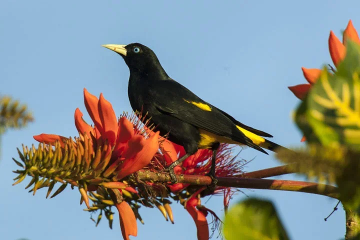 Uma caracterÃstica marcante do japiim é seu comportamento social. Eles são aves gregárias, vivendo em bandos e construindo ninhos em colÃŽnias. Foto: flickr - glorious journey photography -