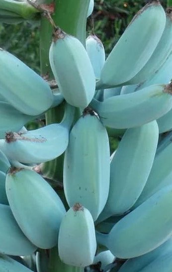 Na verdade, a leve coloração azul-prateada só aparece quando a banana ainda não está madura, em razão da fruta ter um revestimento natural de cera, material que impede a absorção integral da luz solar pela clorofila da casca. Em geral, essa variedade tem entre 18 e 23 centímetros de comprimento e adquire o tom amarelo característico das bananas quando amadurece. Foto: Reprodução/Sociedade Internacional da Banana -