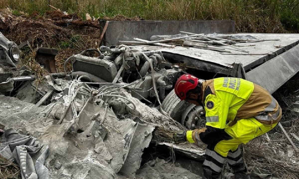 Caminhão carregado com cal e cimento tomba e mata motorista