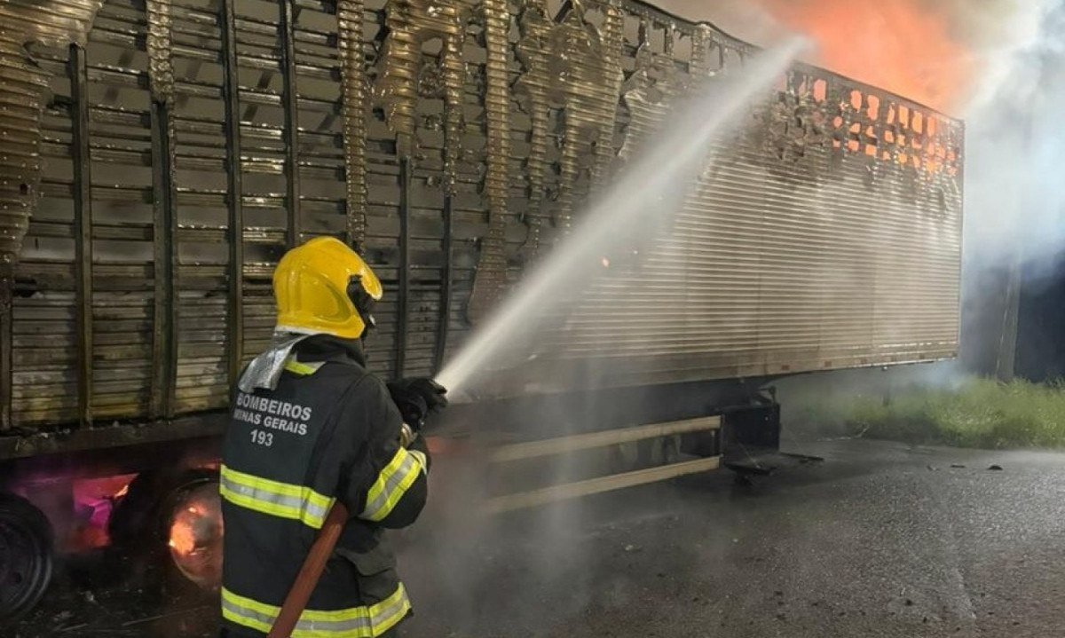 Carreta com carga avaliada em R$ 850 mil pega fogo na BR-381