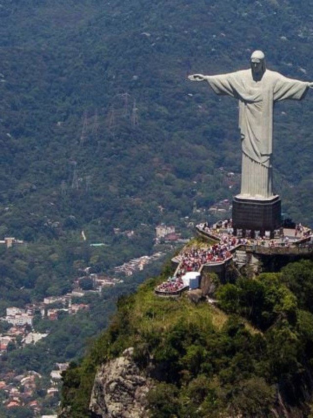 O Cristo Redentor fica a 709 metros acima do nível do mar, no Parque Nacional da Tijuca, sendo feito de concreto armado e pedra-sabão.