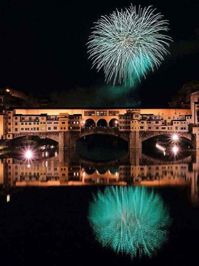 Ponte Vecchio (1345): A ponte mais antiga de Florença, famosa por suas lojas de joias e pelo corredor Vasariano, que conecta o Palácio Pitti ao Palácio Vecchio