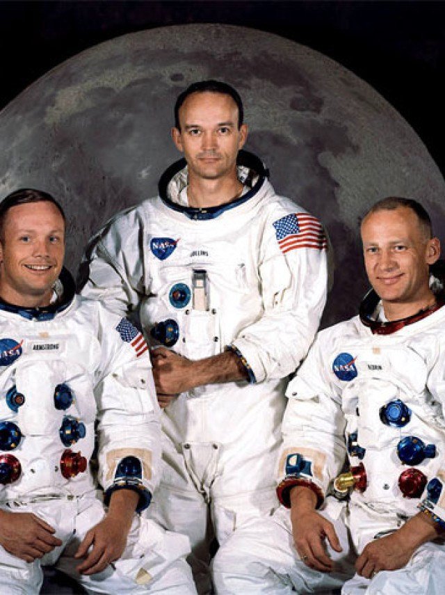 O terceiro tripulante, Michael Collins, de 38 anos, ficou na nave. Enquanto Collins cuidava dos controles da nave, Armstrong e Aldrin coletavam materiais. Ao todo, eles ficaram cerca de 21 horas e meia na Lua.