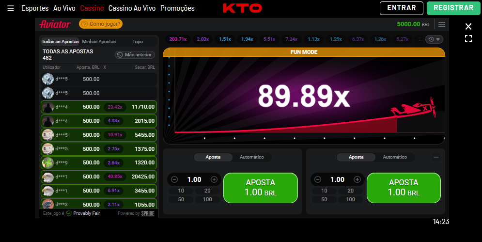 Uma dica bacana para jogar Aviator na KTO é fazer uma entrada manual e outra automática. Na automática, programe seu cash out para um multiplicador mais baixo, no sentido de proteger sua banca. E na manual, tente atingir um multiplicador mais alto.