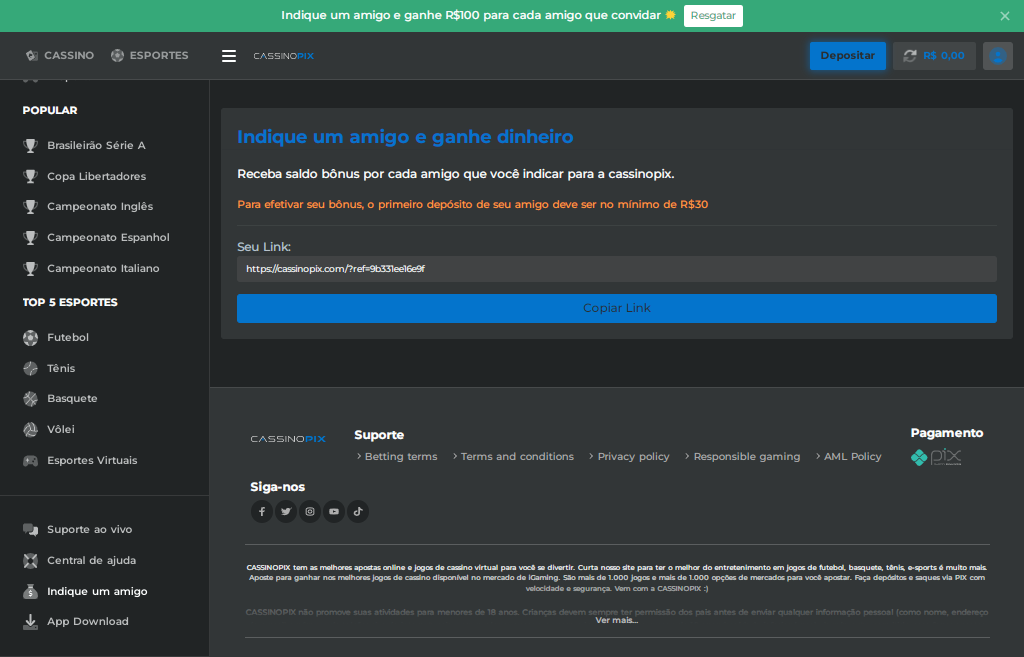 Vale salientar, ainda, que o CassinoPix cumpre as regras da nova lei de apostas esportivas do Brasil, que regulamentou o setor.