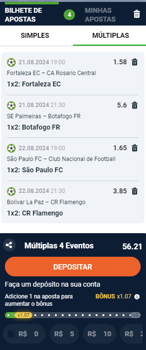 - Selecione 2 ou mais mercados de qualquer esporte com odds iguais ou maiores de 1.3;