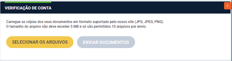 Ao apostar de acordo com o rollover da promoção 20bet 5 reais e cumpri-lo, o jogador consegue fazer o seu levantamento desde que tenha verificado a sua conta previamente. Para isso, o jogador deve enviar documentos oficiais com foto pela plataforma, no limite de 10 provas.