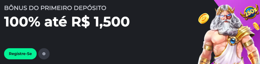 - 100% até R$ 1.500 no 1º depósito.