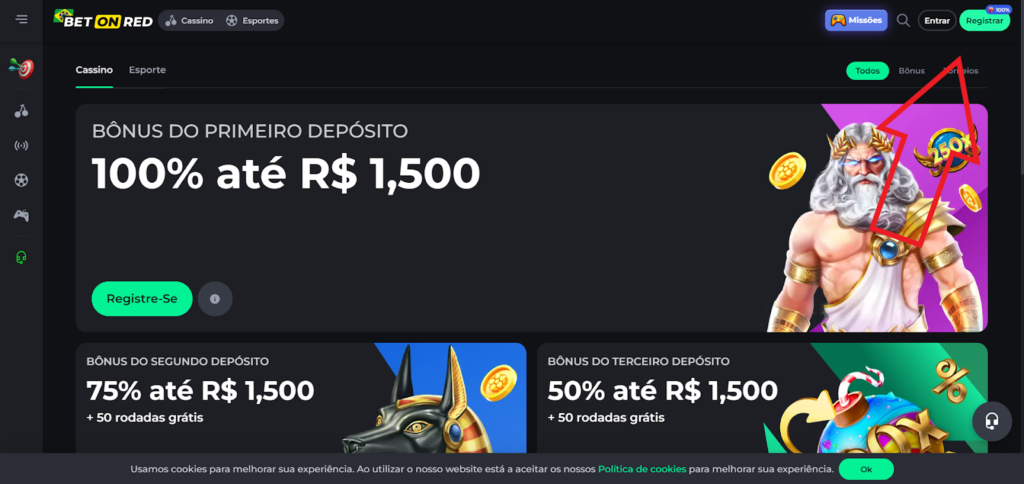 Perceba que o código promocional BetOnRed não é mencionado em nenhum momento do seu depósito ou cadastro. Portanto, pode ignorar essa questão ao se cadastrar ou depositar nesse site.