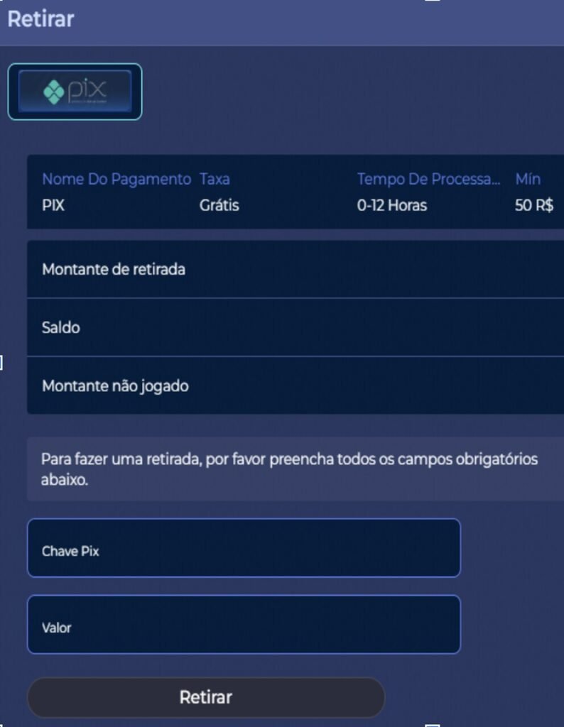 No momento, o saque mínimo OleyBet é R$ 50, enquanto o valor máximo é R$ 5.000. A transferência leva até 120 minutos. Abaixo, mostro os passos necessários: