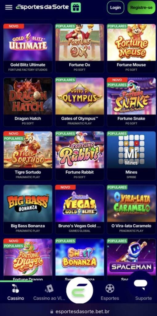 O lobby vasto atende muito bem tanto iniciantes quanto high rollers que apreciam jogos VIP. Apesar de ainda não ter um app, a Esportes da Sorte oferece uma experiência mobile excelente. No site, você encontra diversos bônus e promoções para jogar diferentes categorias de jogos.