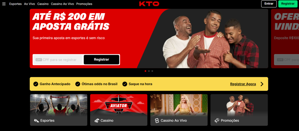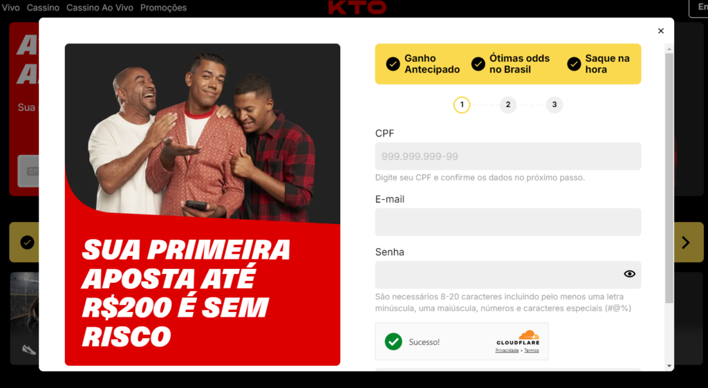 Para se fazer um cadastro KTO, clique em qualquer um dos nossos exclusivos banners nesta página. Isso redirecionará você para a página oficial da casa de apostas.