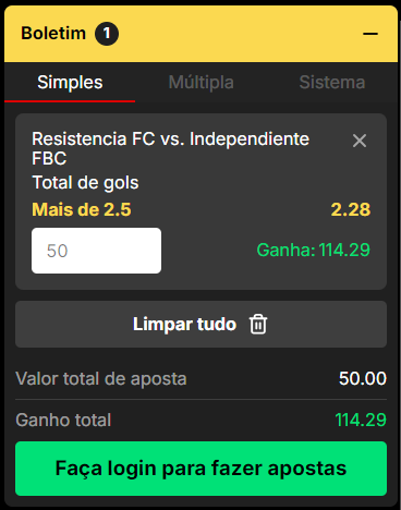 A aposta será adicionada automaticamente ao seu boletim de apostas. Insira o valor que deseja apostar e confirme a aposta.