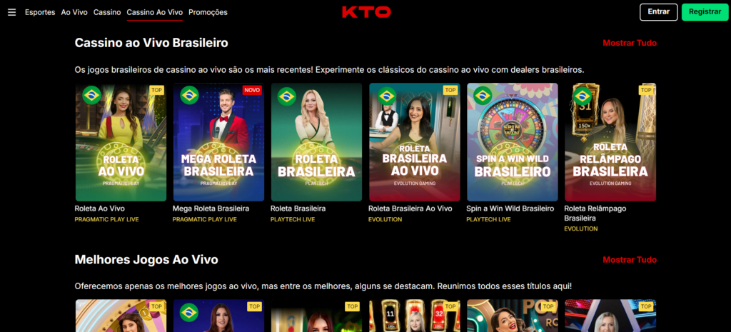 A experiência de cassino ao vivo KTO é altamente interativa. Você pode se juntar a mesas com crupiês reais para os mais diversos jogos, com mesas brasileiras também. A transmissão ao vivo cria uma atmosfera autêntica de cassino diretamente na sua tela.