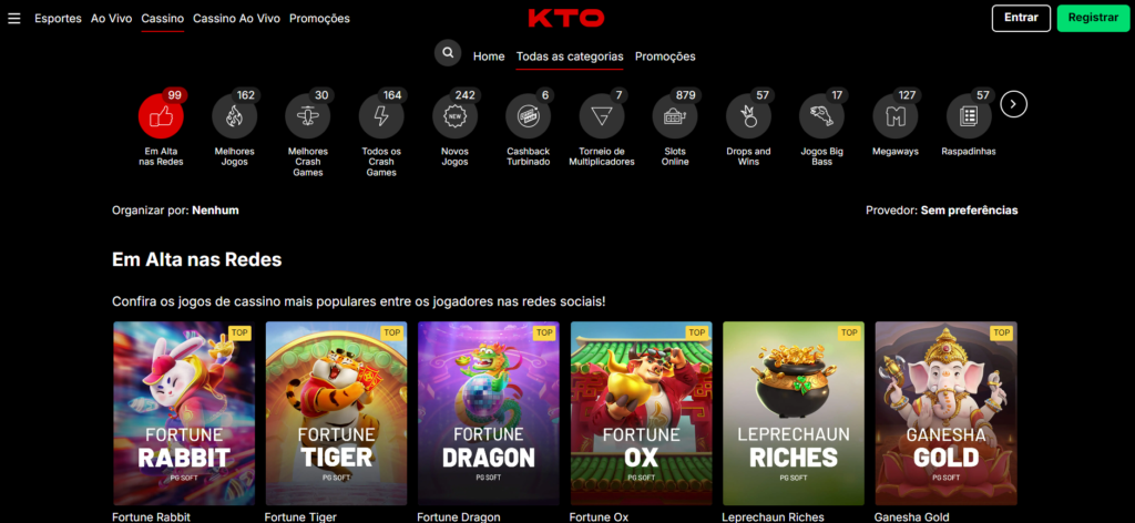 A plataforma conta com uma seleção diversificada que inclui slots, crash games, roleta, blackjack, poker e jogos ao vivo com crupiês reais. Veja abaixo como você pode explorar e jogar no cassino da KTO: