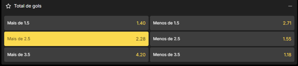 Após selecionar o mercado desejado, clique na odd (cotação) que melhor represente sua previsão para o evento.
