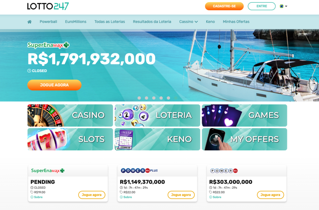 Além disso, oferece uma ampla gama de loterias internacionais, como Powerball, Mega Millions e EuroMillions.