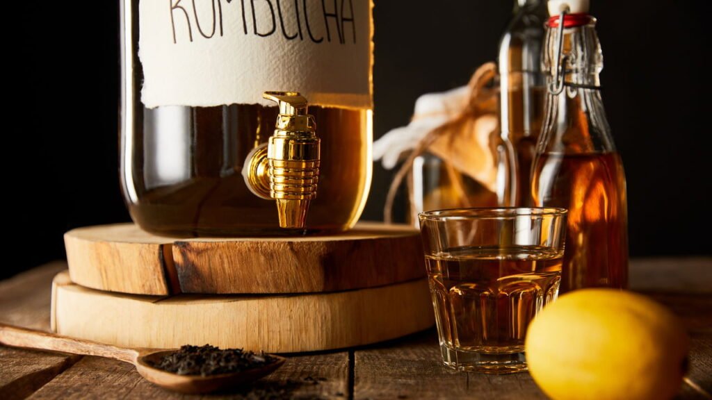 Como o kombucha é produzido e quais ingredientes são utilizados