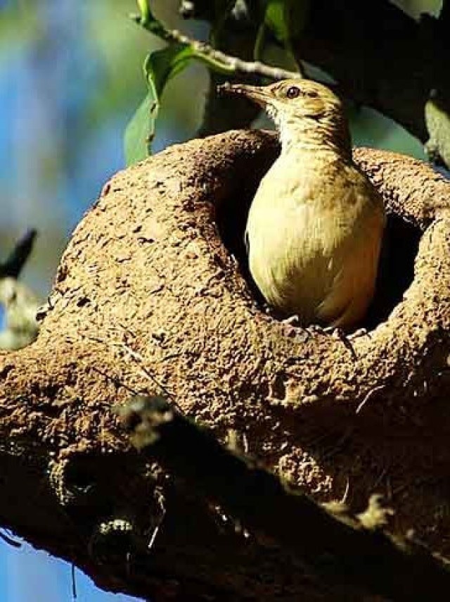 João-de-barro (Furnarius rufus): Famoso por construir seu ninho de barro em formato de forno, com uma entrada voltada para baixo, o que ajuda a proteger do clima e de predadores.