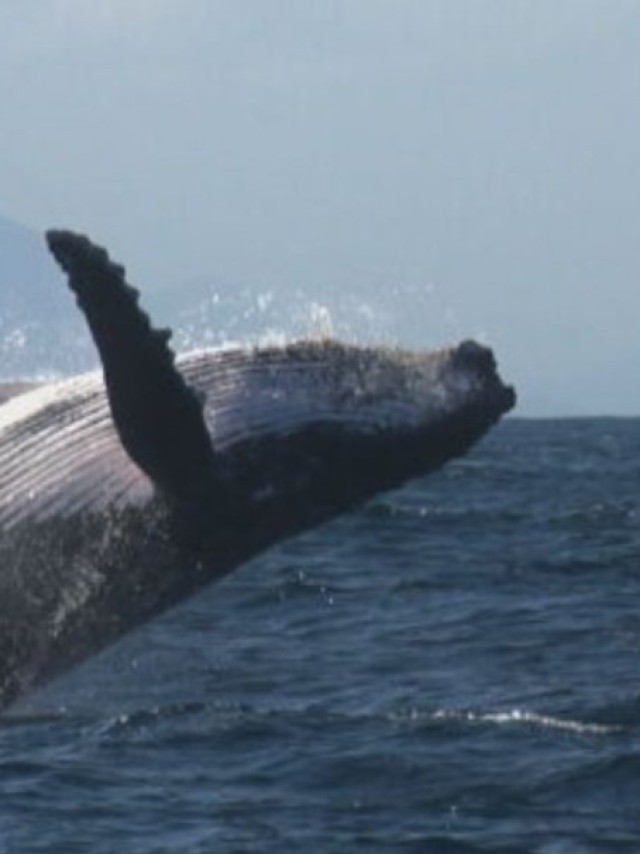 Baleia-fin - A espécie pode medir 27 metros e pesar até 70 toneladas. Elas foram caçadas no século passado, causando uma diminuição de sua população estimada em 70%. Também continuam a ser caçadas em pequenos números pelo Japão e também sofrem impactos decorrente de colisões com grandes navios.