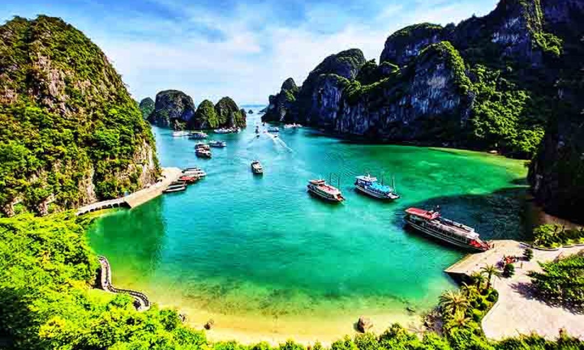 Baía de Halong, Vietnã: Famosa por suas formações rochosas e ilhotas, Halong é Patrimônio Mundial da UNESCO e um dos destinos mais visitados no sudeste asiático.