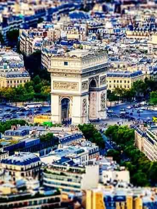 Arco do Triunfo - Paris - França. Situado na Place Charles de Gaulle, foi construído entre 1806 e 1836 para celebrar as vitórias militares da França durante o reinado de Napoleão Bonaparte. O monumento possui 50 metros de altura e 45 metros de largura, decorado com esculturas que homenageiam batalhas e figuras históricas. É, além de um símbolo nacional, um popular ponto turístico de Paris.