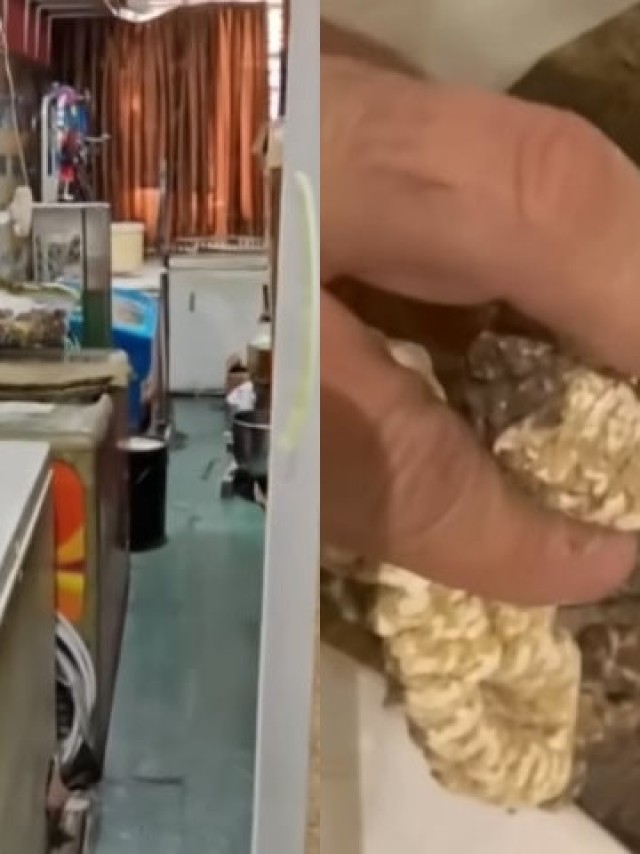 Durante a inspeção, os agentes encontraram cerca de 300 kg de comida estragada, carnes penduradas em varais, baratas, armadilhas de rato e pombos mortos.