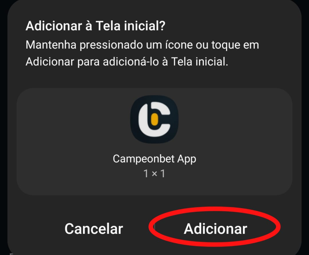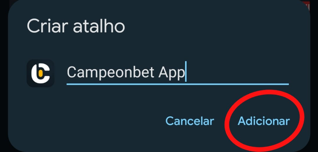 - Nessa nova janela, você pode renomear o atalho para Campeonbet app, se assim desejar. Depois, é só tocar em “Adicionar”.