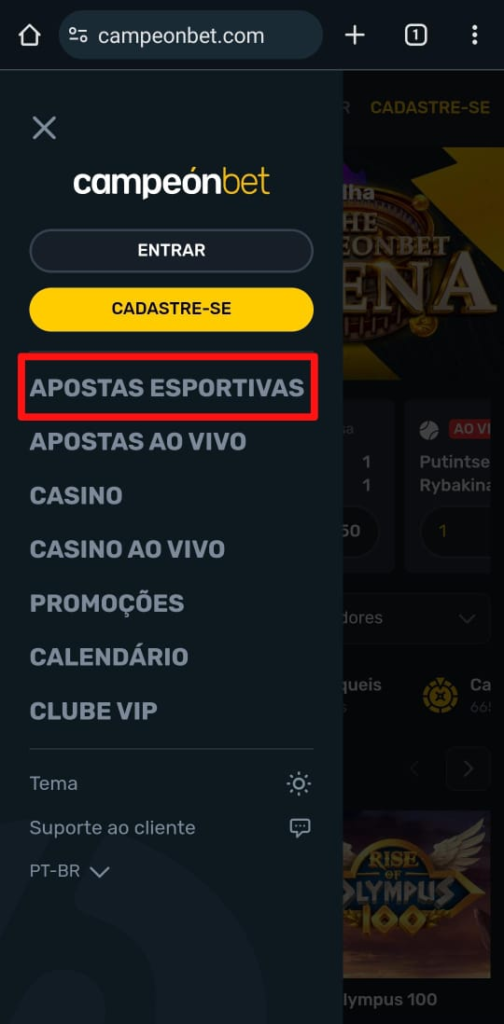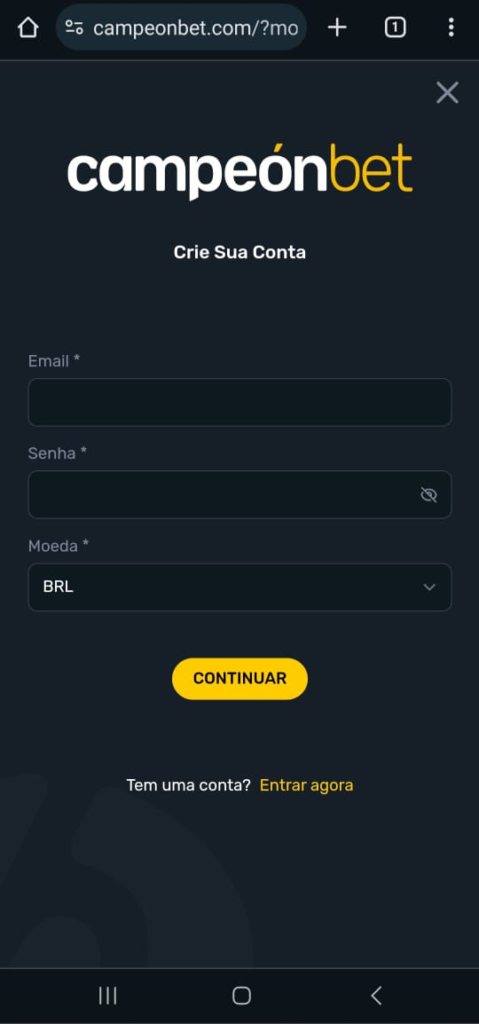 Como se registrar pelo aplicativo Campeonbet?