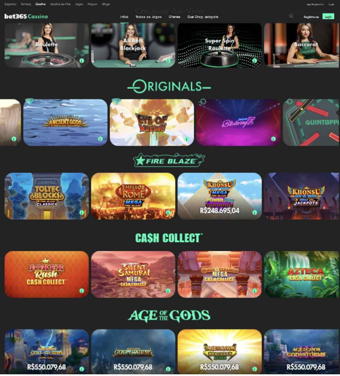 No menu Originals, você vai encontrar uma série de jogos exclusivos do Bet365 cassino. Nele, estão várias opções de slots produzidos especialmente para os jogadores desta plataforma.