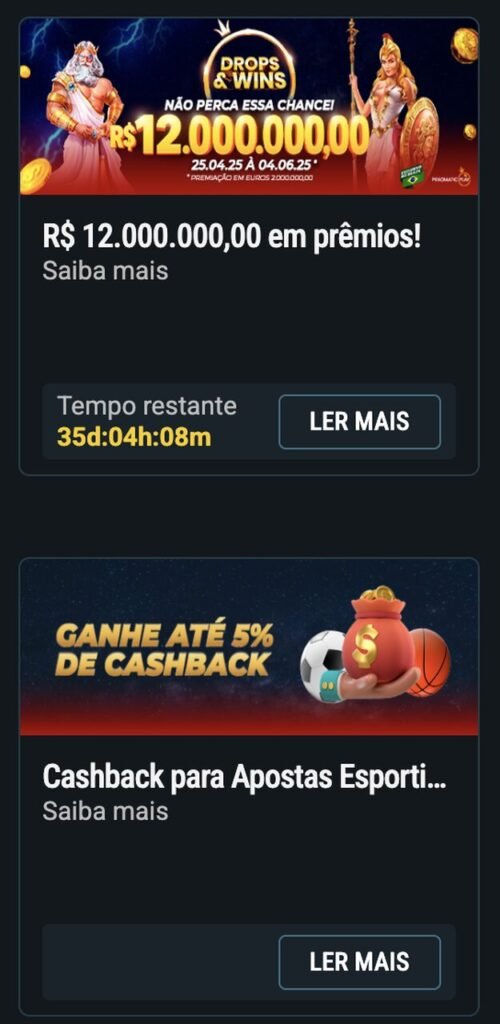 Entre os melhores destaques, vale a pena utilizar a aposta sem risco na primeira fezinha e na primeira aposta pelo app. Em ambas as ofertas, o jogador tem um cashback de 100% em caso de red.