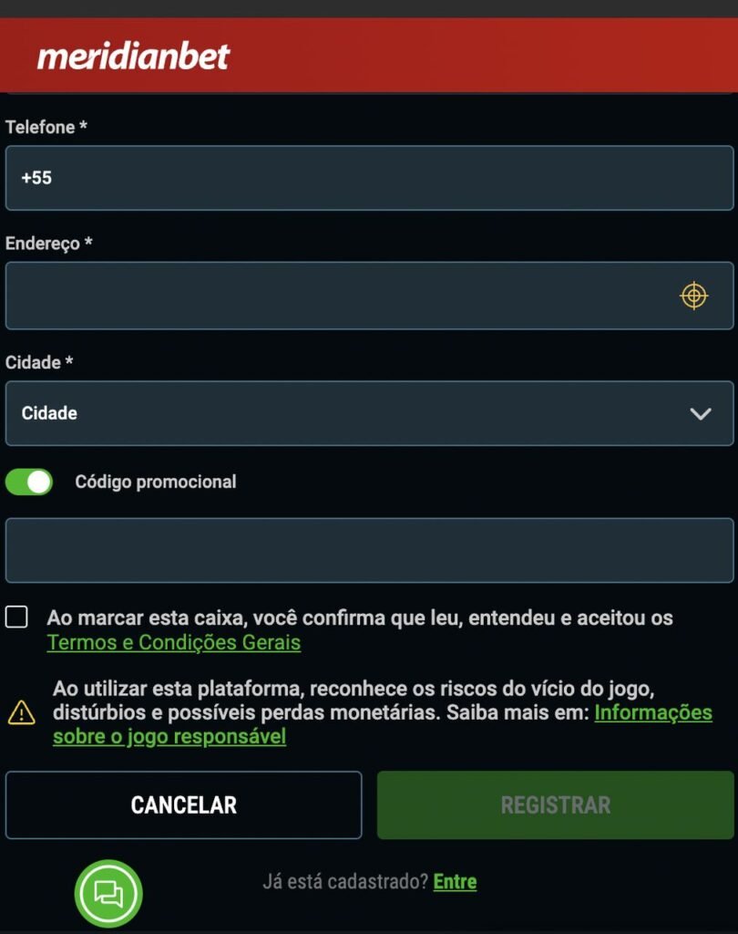 Ainda assim, o cadastro da Meridianbet tem um campo para adicionar o código promocional, que tem finalidade apenas para rastreio.
