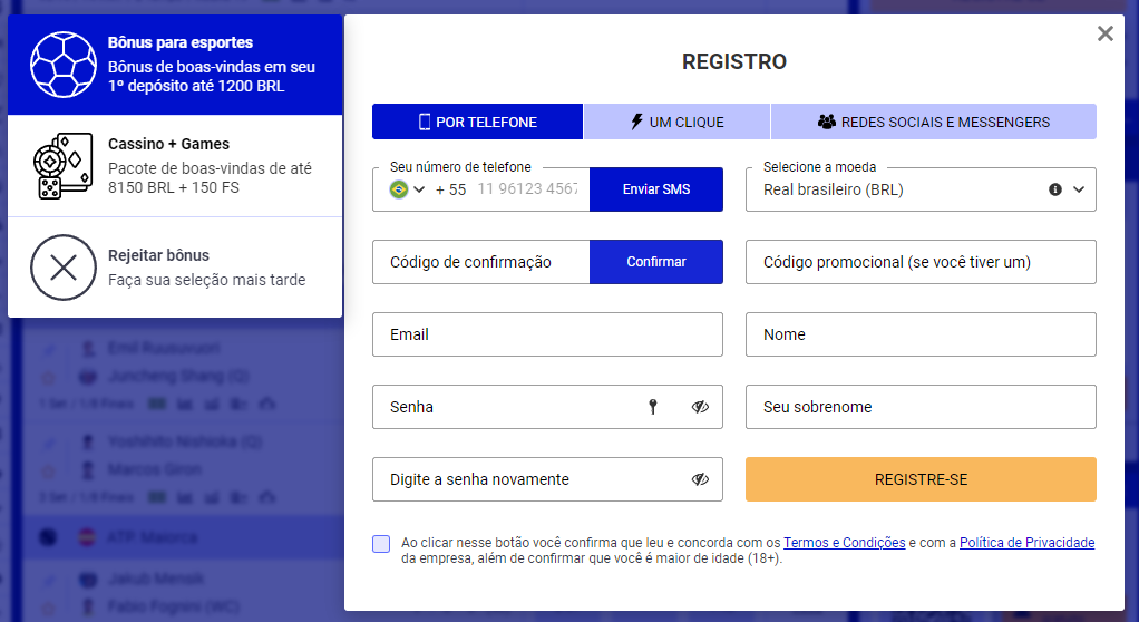 - Inserir as informações de registro: é possível fazer o seu cadastro por redes sociais ou através de um só clique. Em todos os casos, sugiro criar a conta por telefone. Para isso, selecione a aba “por telefone” e então confirme o token enviado via SMS, assim como e-mail e nome completo.