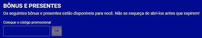 Caso fique desatento e não insira o código promocional, haverá como voltar atrás. Então, lembre-se de colocá-lo quando começar o seu cadastro, mas caso esqueça, depois de criar a conta dá para acessar a página “bônus e presentes” no menu da conta e então informar o seu cupom.