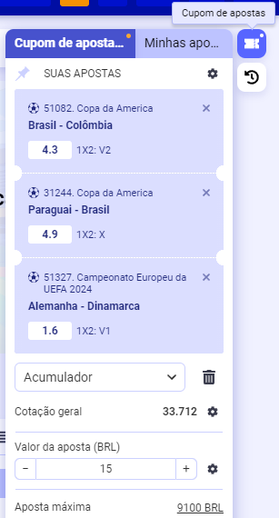Em relação aos mercados, você tem mais de 600 pitacos para fazer. É possível apostar em 1×2, dupla hipótese, handicap europeu e asiático, mercados totais, eventos de jogadores, etc. Em grandes eventos, como a Copa América e a Eurocopa, a quantidade de mercados dobra e alcança 1.200.