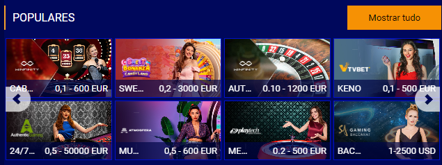 As mesas de live casino na plataforma incluem: