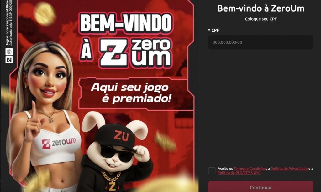 Vale lembrar que, caso você use um código Zeroum após o cadastro, ele é usado apenas para fins de rastreamento e não libera nenhuma oferta exclusiva. Aposte com responsabilidade.