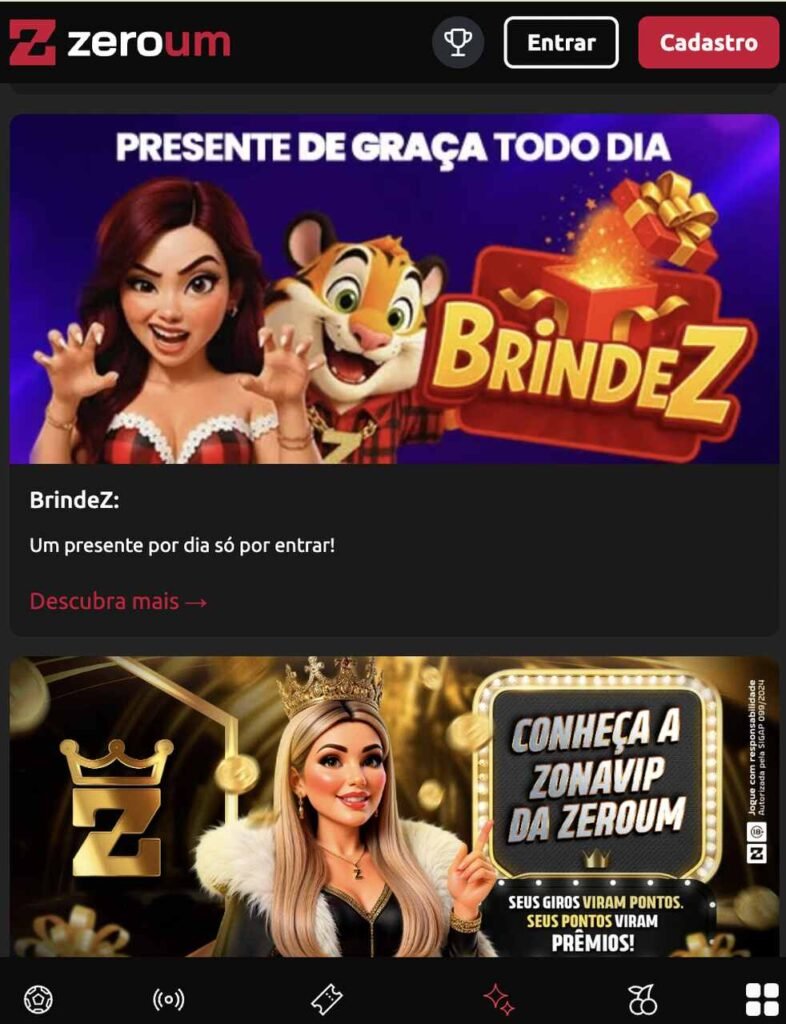 Não é preciso usar o código promocional da Zeroum para acessar torneios premiados de slots, brindes diários no cassino e pontos extras no clube VIP de esportes.