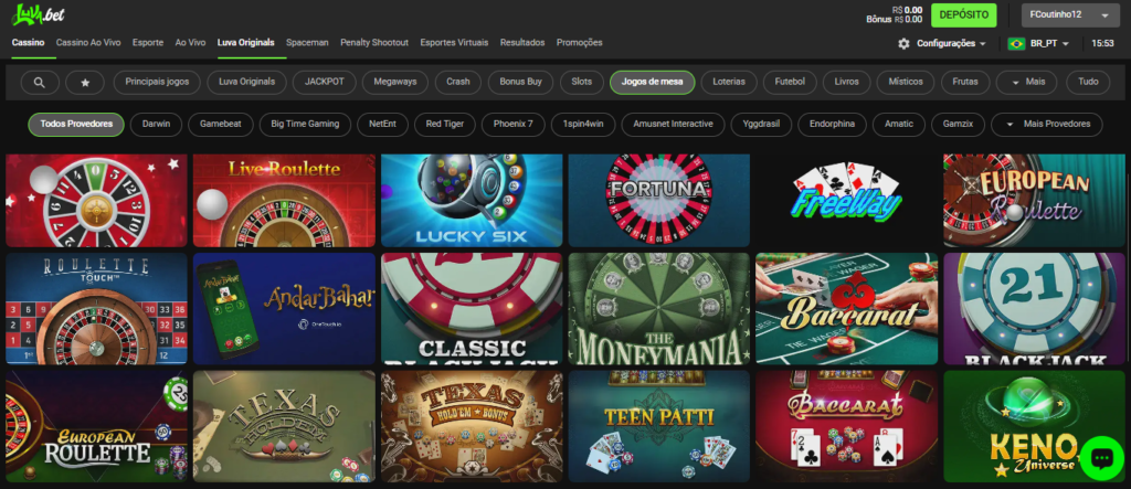 Jogos de Mesa do Cassino Luvabet
