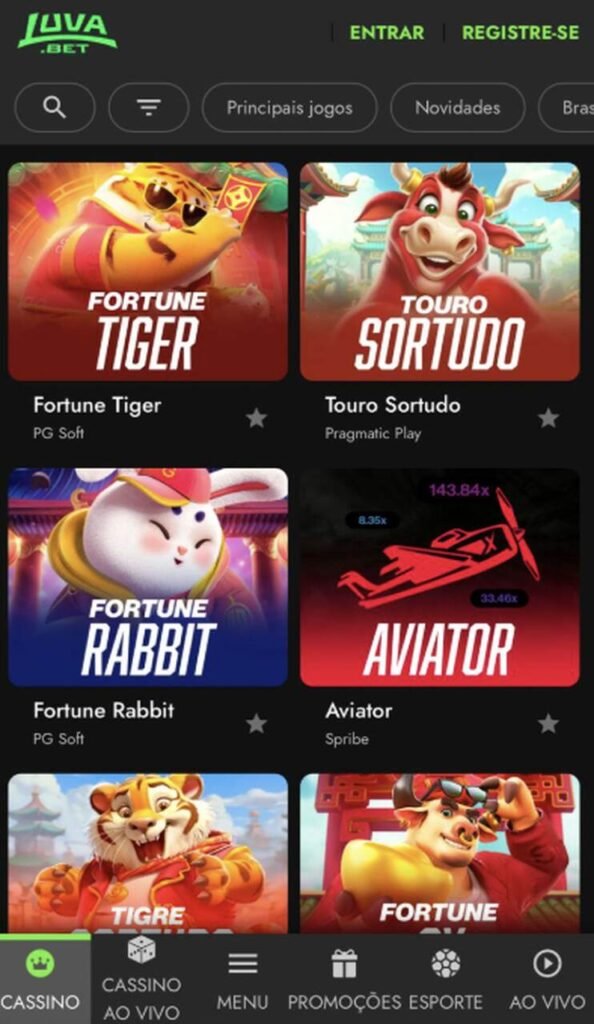Os melhores jogos do cassino Luvabet estão na categoria de slots, que hoje reúne mais de 1.000 títulos das grandes desenvolvedoras, como PG Soft, Pragmatic Play e NetEnt. Mas os títulos originais e os crash games também se destacam, com alguns títulos que costumam aparecer no top 10 da plataforma.