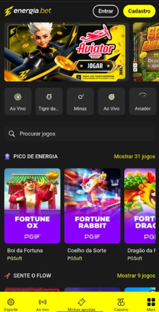 A oferta esportiva inclui apostas pré-jogo e ao vivo, com mercados como resultado final, handicap asiático, totais, escanteios, cartões e Bet Builder. O Cash Out pode ser parcial ou total, dependendo do evento.