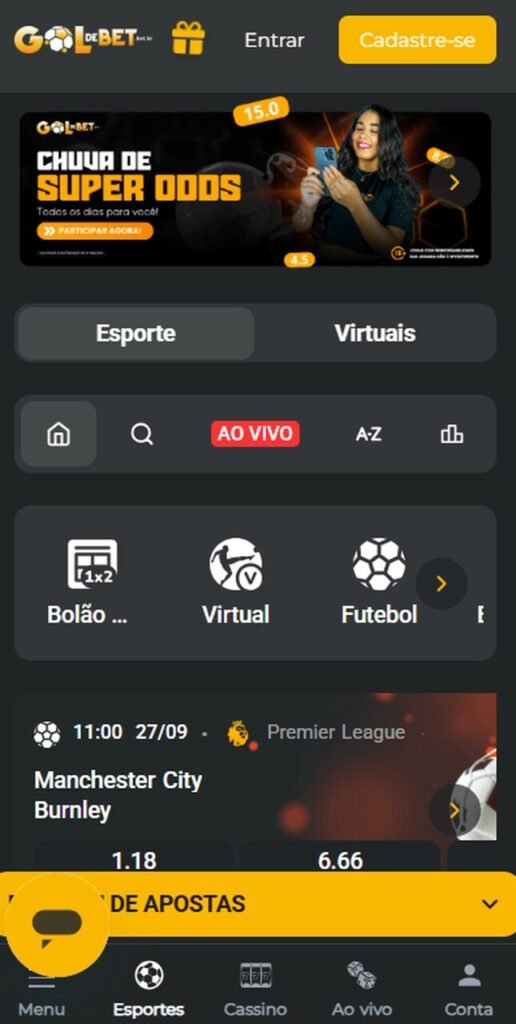 O destaque da plataforma bet está nas apostas ao vivo, com atualização contínua das odds durante a partida. Em futebol (Brasileirão, Libertadores e principais ligas europeias), basquete (NBA) e tênis (ATP/WTA), os mercados reagem rapidamente a eventos como gols, faltas, viradas e mudanças de ritmo, mantendo o painel dinâmico.