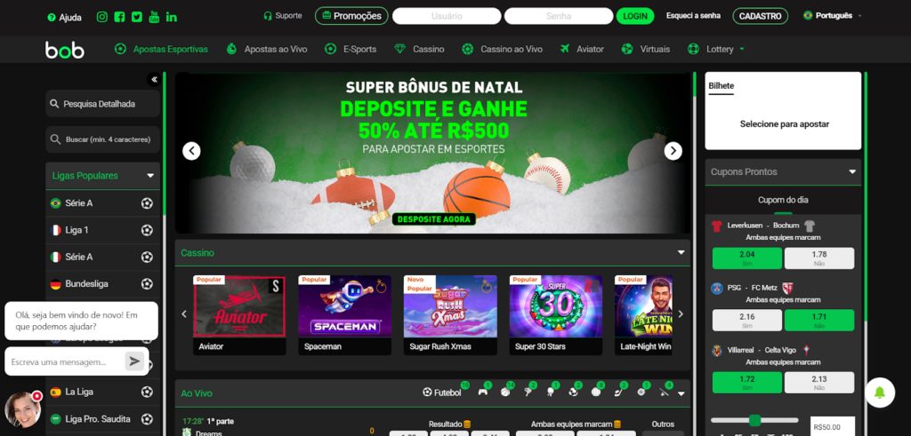 Você pode fazer Vai de Bob apostas esportivas após se cadastrar e depositar em sua conta. Como nós já descobrimos que esse site é confiável, podemos avançar para uma análise do que ele oferece para o apostador brasileiro.