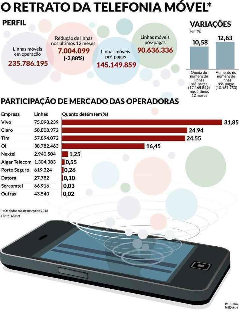 Hoje, segundo dados da Agência Nacional de Telecomunicações, a TIM tem 24,55% de participação no mercado de telefonia móvel, com 57,9 milhões de clientes. Com isso, ocupa o terceiro lugar, colada à Claro, com 24,94%, segundo os dados de março, os mais recentes. Já a Oi detém 16,45%. Com uma possível aquisição, a operadora italiana ultrapassaria a Vivo (31,85%) e chegaria à liderança no mercado nacional. Confira a seguir, trechos da entrevista de Pietro Labriola.